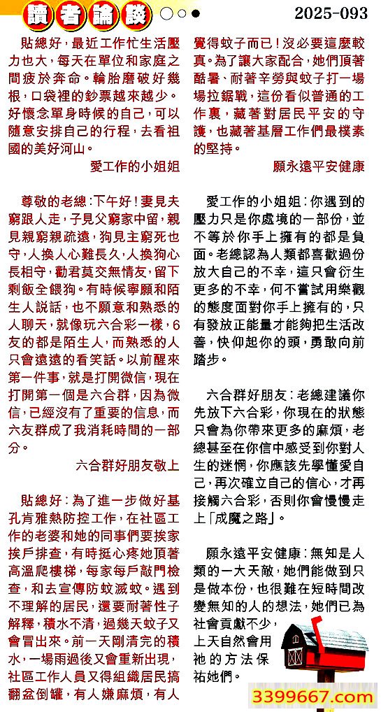 主题 :093期:彩民推荐〖貼信讀者論壇〗