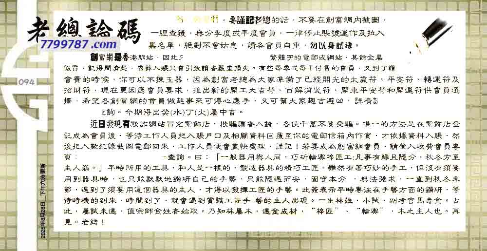 094期:六合皇金句/老总论码/萧公子/林大师/五行夺码/老总信箱截