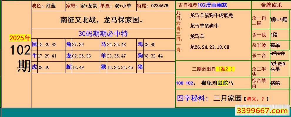 主题 :102期:小鱼儿30码期期中+幽默猜测