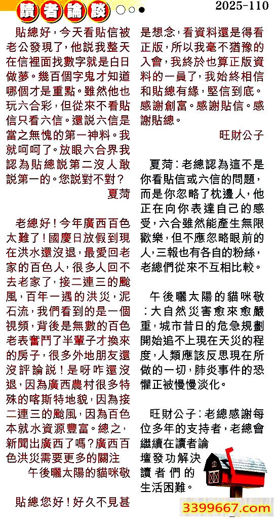 主题 :110期:彩民推荐〖貼信讀者論壇〗