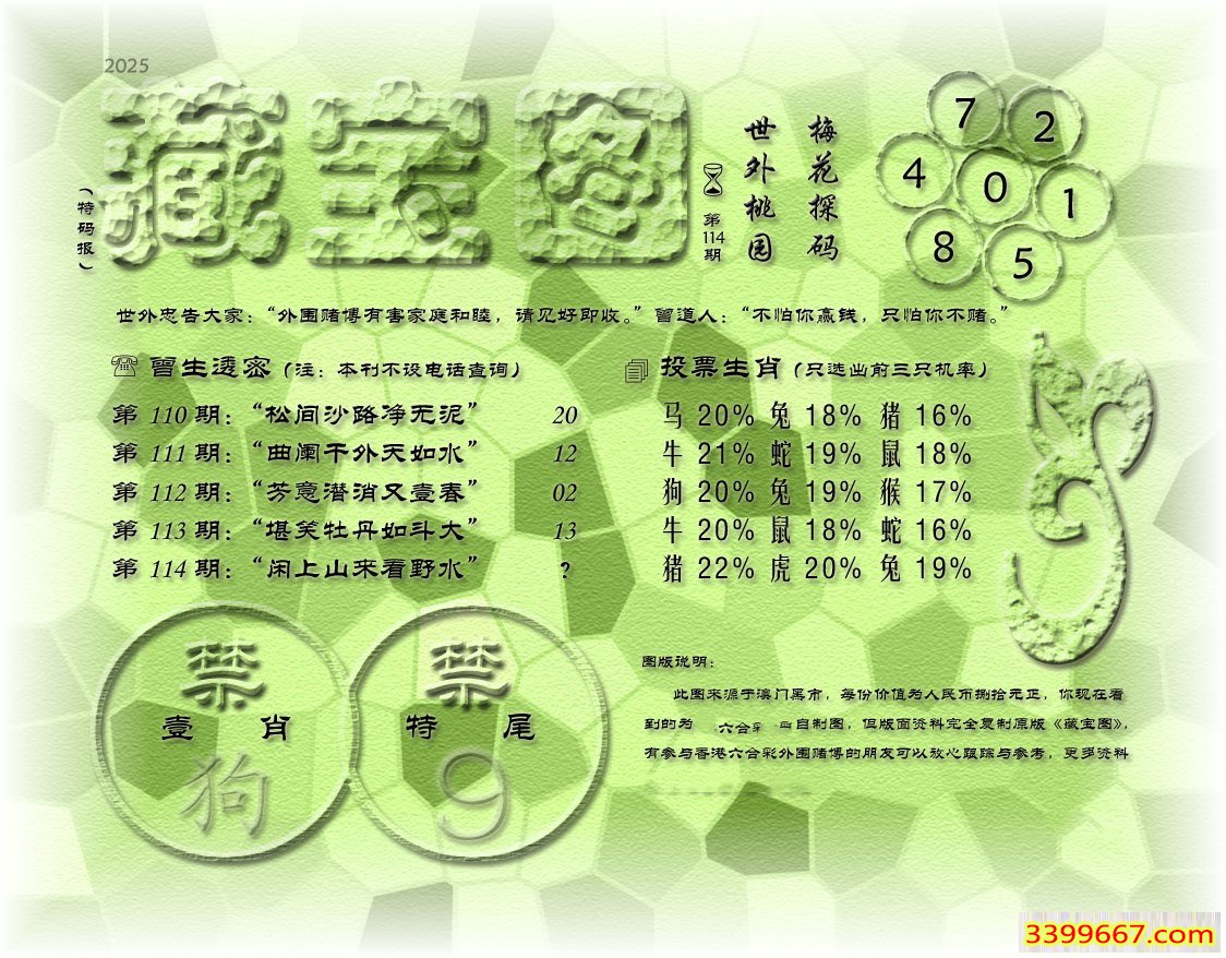 | 主题 :114期藏寶圖 新:不驾蒲轮左禹汤 老:闲上山来看野水 禁:狗 禁:9尾 |