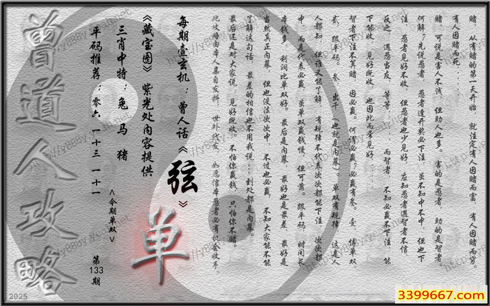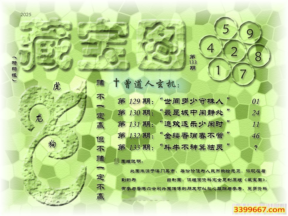 | 主题 :133期藏寶圖 新:斗牛不神箕独灵 老:轻舸惟恐东下迟 禁:牛 禁:0尾 |