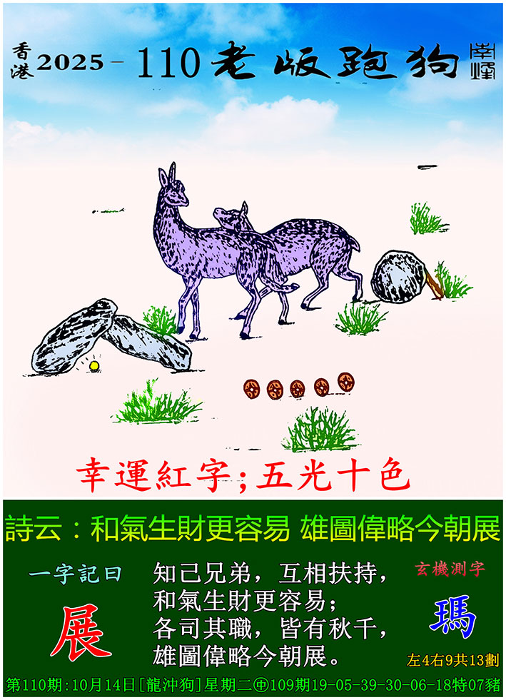 主题 :110期老版跑狗一字記之曰:【展】 玄機測字:《瑪》