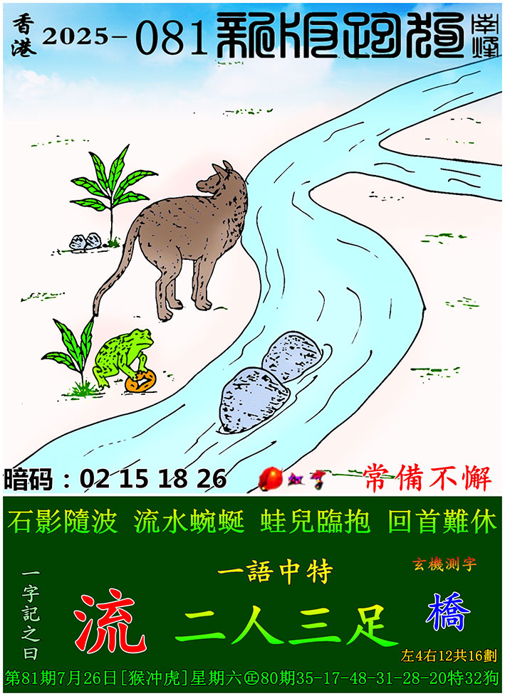 081期:新版跑狗一字記之曰【流】 玄機測字:【橋】